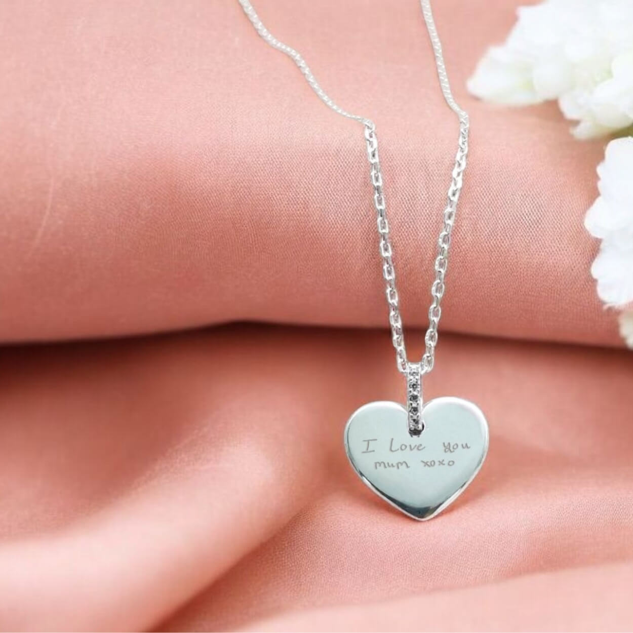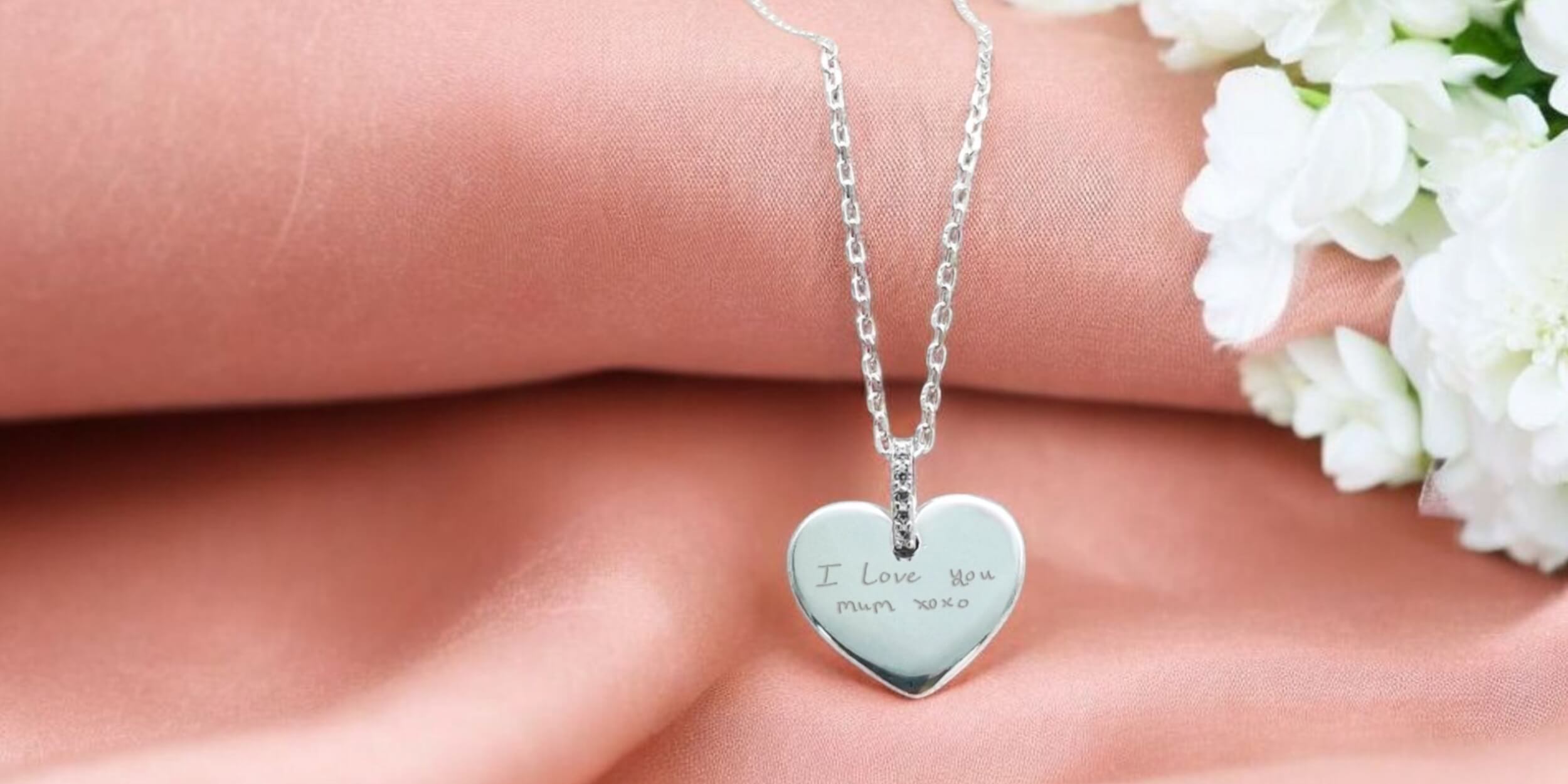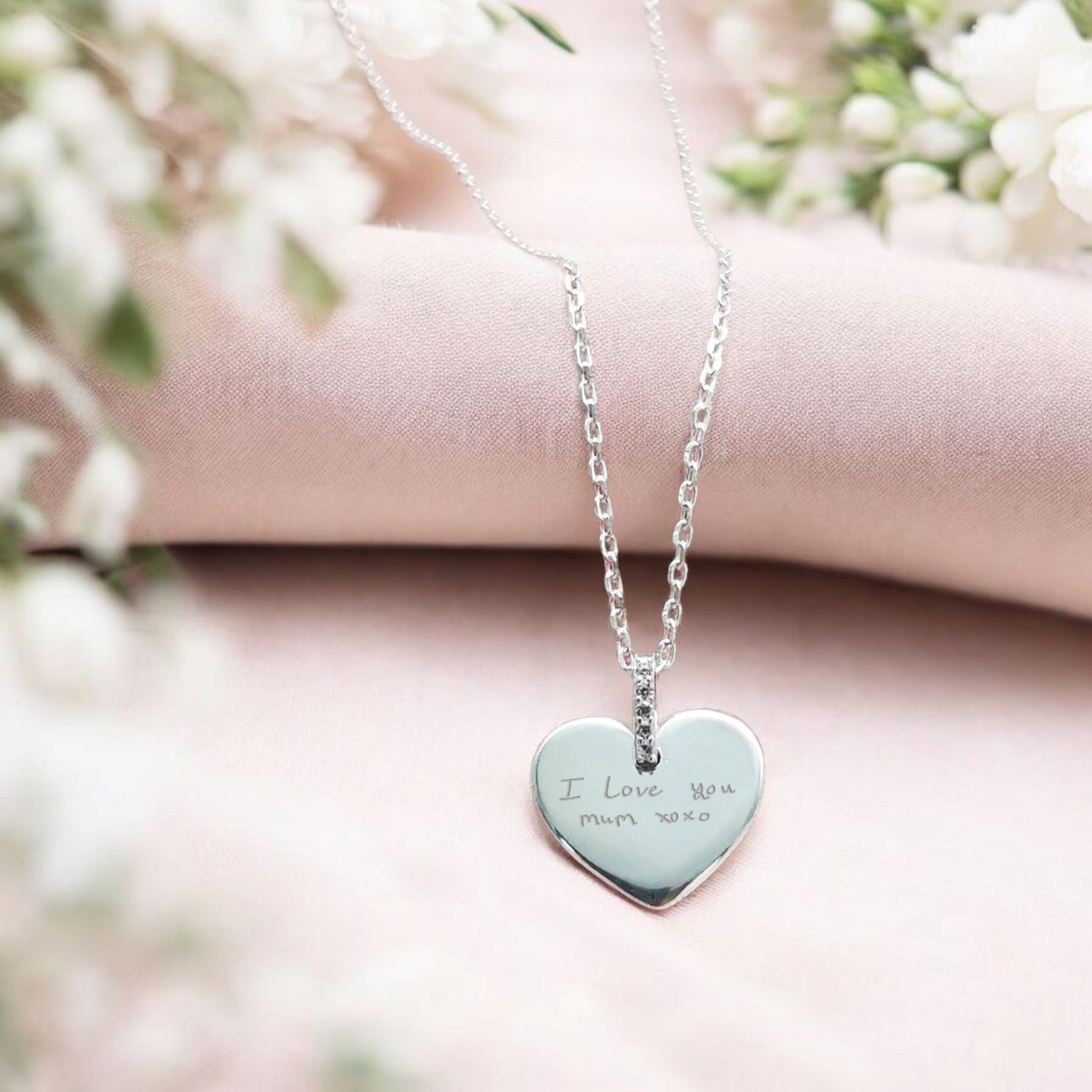 Keep Them Close Forever — Sterling Silver Heart Necklace, Engraved with Their Actual Handwriting